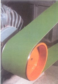 | | Flat Transmission Belts | Series | Characteristics and Applications | | | P | Highly efficient power tool transmission belts suitable for both light and medium drives: power operated tools, auxiliary drives in the textile and mechanical industry, etc. Installed as conveyor belts in the packaging and graphical arts industries. Antistatic. |  | | Z | Highly efficient power transmission belts suitable for both medium and high horsepower drives; extremely abrasion resistant; oil, grease proof; antistatic. Designed to perform well in difficult working conditions. Recommended for: pumps, ventilators, mixers, rolling-mills, turbines, saws for marble, chippers, etc. |  | | T | Specially designed for tangential drives in the textile industry. The high-quality features are: rectilinear and quiet running, antistatic, optimum grip, energy saving, resistance to abrasion, heat, oil, dust, are obtained in every field. Suitable for multiple drives. |  | | DG | These double rubber faced belts have special elastomers which maintain continuous frictional values. Antistatic. Suitable for: folder-gluer machines, tube winders, post office machinery and in the graphic arts industry, multiple drives, etc. |  | | LT | Belts with chrome leather driving surface. Contrary to belts with synthetical covers, LT belts are recommended for all drives subject to violent overloads since the leather driving surface allows temporary slipping without burning. Suitable for: conical drives, drives with belt-shifters, chippers, crushers, paper mills, etc. Suitable for cross drives. |  | | LL | Belts with double chrome leather covers. The same characteristics and applications envisaged for the LT series apply also to the LL series. Suitable for multiple drives and cross drives. |  | |